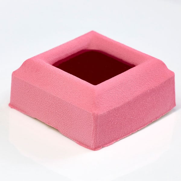 Frozen, ready to use eclair filled with raspberry pastry cream and topped with raspberry fondant. Each eclair is 80 g.